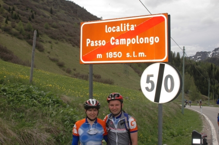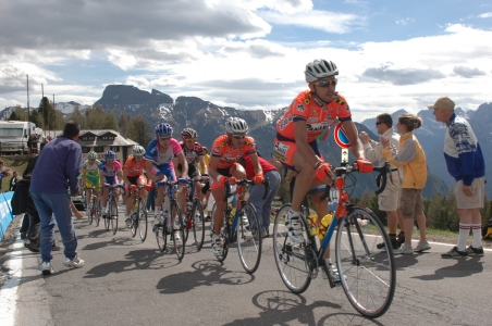 Felvirradt a nagy nap. Úgy terveztük, hogy a Giro d'Italia Arabba felé vezető szakaszát a Pordoi hágó tetején nézzük meg (2239 m). Mivel biciklivel akartunk felmenni, Zoli megtervezte a napot, pontos időbeosztást csinált arra, hogy mikor kell indulnunk ahhoz, hogy háromra a Pordoi tetején legyünk, miközben azt mindkét oldalról megmásszuk. 9-kor indult a hegyi menetünk csodálatos napsütésben. Útvonal: Arabba-Passo Pordoi-Passo Sella (félútig)-Passo Pordoi-Arabba