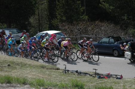 Kis idő múlva a gruppo di maglia rosa is felbukkant a kanyarban.
