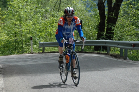 Agordoból Rocca Pietoreig felfelé mentünk, de nagyon jól lehetett haladni. Az olasz srácokat valahol a két helyiség között értük utol. Gondoltuk, innen négyen megyünk a célig, és próbáltunk némi bolyozást kezdeményezni. De nem voltak rá vevők. Először Zoli állt előre, de a fiúk nem mentek, én voltam hátul, de ahelyett, hogy Zolit utolértük volna, csak távolodtunk tőle. Mivel nem akartam életem párjától nagyon eltávolodni, gondoltam, akkor előre megyek, csak ösztönzi őket, hogy egy lány van elől. Nem vették a lapot. Amikor megindultam a hátsó pozícióból, jó kis tempót sikerült felvenni, ezzel álltam előre. Hátranéztem, de nem jöttek. Most meg Zoli kezdett velük lemaradni. Aztán konstatálta, hogy a fiúk nem jönnek velünk és utánam eredt. Ezen a részen nagyon szaladt a szekér, igaz némi hátszél is a segítségünkre sietett.