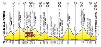 Az egyik kanyarban egyszer csak lelkes szurkolótábor kiabálta, hogy "Hajrá Gruppetto!", majd gyorsan fotós pozícióba helyezkedtek. Pöttty buzdított teljes lelkesedéssel. Nem sokkal ezután újabb "Hajrá Gruppetto!, Hello Kollina"-ra lettem figyelmes. Próbáltam én is értelmes hangokat kiadni magamból. Végül is sikerült pROF-ot üdvözölnöm, és viszonozni a buzdítást, de csak annyit láttam, hogy az új kékvillám elsuhan mellettem a Campolongora vezető út felénél.