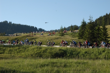 La Villanal már nagy jövés-menés volt, sok bringás araszolt felfelé az úton. Az autót leállítottuk a patkára, majd gyorsan összeszedtük magunkat és mi is bringával érkeztünk La Villaba. Rajtunk kívül még 8000 másik elvetemült kerékpáros várta a rajt elérkezését.